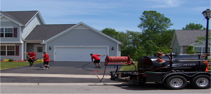 Commercial Service 24 Hours a day 7 days a week (585) 621-7325 Industrial,Commercial & Residential                                 (585) 621-7325 Rochester’s Leading Driveway Sealing Service 24 Hours A Day Our Driveway Sealing Service Coal tar Driveway Sealer has a great advantage over asphalt Sealer in that Coal tar Driveway Sealer holds up under exposures to petroleum oils and inorganic acids. Another outstanding quality of Coal Tar Driveway Sealer is their extremely low permeability to moisture and there high dielectric resistance, both of which contribute to its ability to hold up under harsh Rochester weather. Why We Use Coal Tar Emulsion Driveway Sealer?  Allot of companies use asphalt sealer as it is the cheaper alternative but also is a thinner sealer and be aware that Asphalt sealer will not protect your driveway from gas or oil. These petroleum products will eat the binder that holds the driveway together. We have links under education center on this page to help you understand the different type of driveway sealer’s that are available. One other thing that you may hear is companies water down there sealer. This is a common practice for sealing companies to save money on material. One way to avoid this is ask about a warranty You should always get a two year warranty on you sealer. A good coal tar sealer should last two years and the company applying this Driveway Sealers Should have no problem warranting it for that time if they are use the proper dilution rate. Custom Sealing & Pressure Washing offers a full range of services that can help you double the life of your Asphalt Driveway and address small problems before they become larger and more costly ones.  EDUCATION CENTER Custom Driveway Sealing Sealcoating What You Should Know About Driveway Sealer Best Methods For Applying Sealer  Squeegee Application Protection rating  - Fair  Pros:  Does not require expensive equipment. Uses more sealer than Roller Sealing, Better surface coating, doesn’t travel. Cons: Consider how a squeegee works on your car window; you put a lot of window cleaner on but you scrape most off it back off with the squeegee. The same principle is true for driveway sealer. Natural Brush Application Protection rating - Excellent Pros: Specialized Natural bristle brushes is by far the Best method of sealing Asphalt. The brushes spread a large volume of sealer evenly over the surface. The bristles are long and soft so they leave a vary thick coat of sealer behind while working the sealer deep into the pours.  Another benefit is better control of the material for cleaner job. Con:  None Synthetic Brush Application Protection rating - Good   Pros: Synthetic brushes is by far better than the squeegee method The brushes spread a large volume of sealer evenly over the surface. The bristles of the brush work the sealer deep into the pours. Cons: Bristles on brushes are stiff and don’t leave as much sealer behind as Natural Bristle Brushes. they also have a tendency of leaving brush marks on the driveway if the applicator using the brush is not experienced At Custom Sealing & Pressure Washing Our Coal-Tar Emulation Sealer is hand-applied using specialized natural bristle brushes. All are Driveway Sealing Rigs are state of the art and pump sealer through a hose to your driveway. This eliminates the need to fill and caring messy buckets around your property. We also edge and clean all areas of the Driveway before applying your sealer. All our crew members have a been with us two year or more. This translates to better service to our customers as we are not constantly re-training seasonal help. Nothing! is more important to use than your complete and total satisfaction of our work. Webster, Pittsford, Penfield, Mendon, Brighton, Chili, Gates, Greece, Hamlin, Henrietta, Irondequoit, Ogden, Parma, Perinton, Rush Canandaigua, Bristol, East Bloomfield, Victor, West Bloomfield, Bloomfield, Victor Driveway Sealing Rochester, NY Sealing Asphalt Sealing Rochester New York and Driveway sealing services offering cleaning and sealcoating of commercial and residential properties. Your Industry leading mobile sealing contractor Service Area